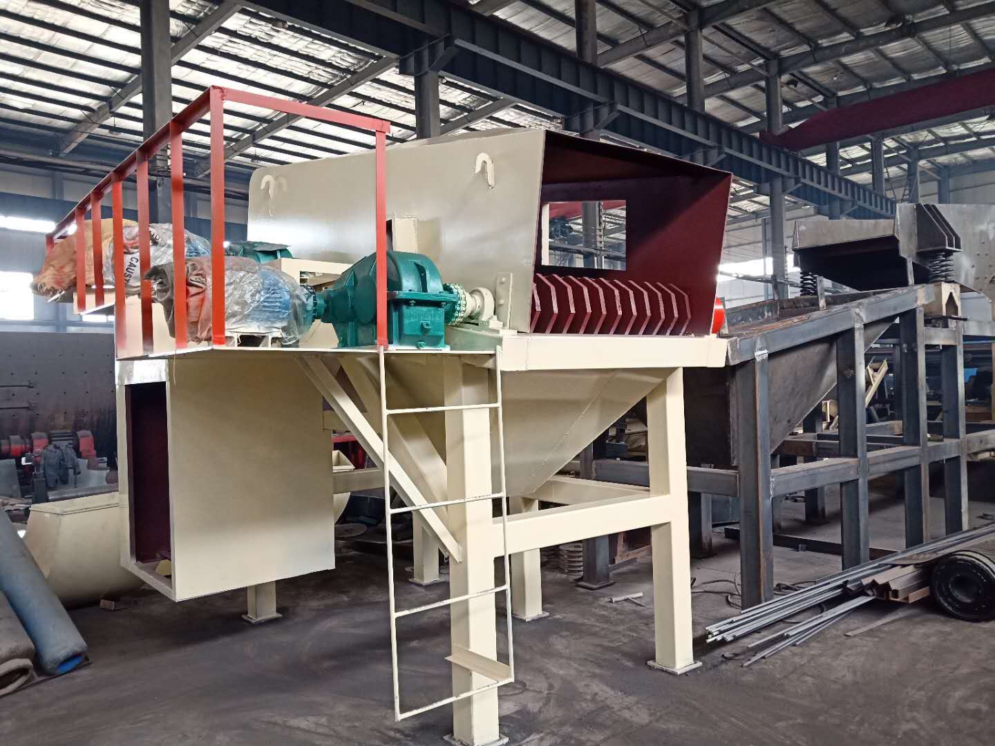 1、建筑垃圾分離機利用材料中磚塊與混凝土塊的分離裝置,包括殼體,殼體內固定有機架,機架通過設置在底部的支座安裝在殼體內;